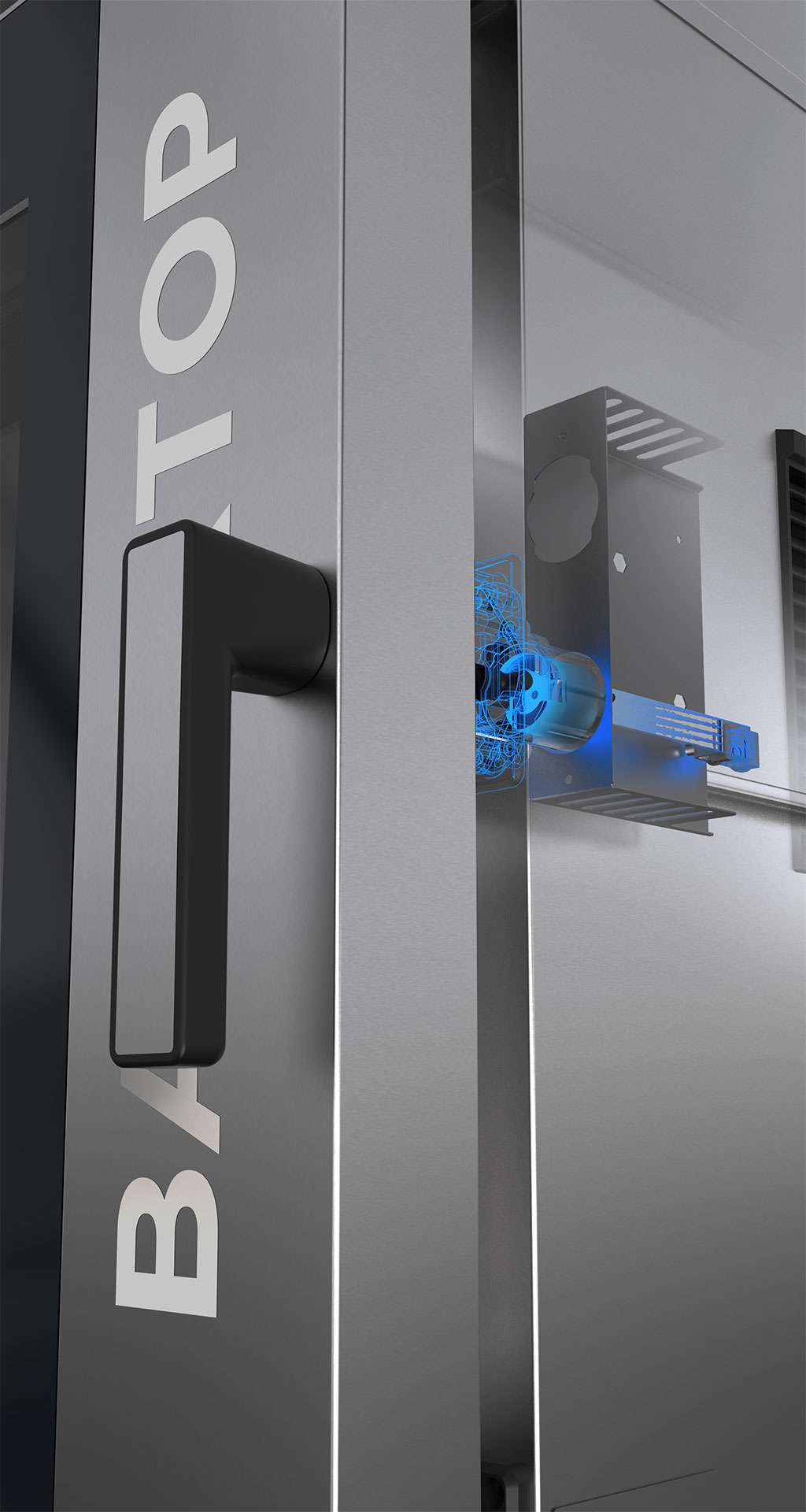 The door can be equipped with a lock system to prevent the opening during baking and washing. Maximum safety and minumum staff risks and mistakes.