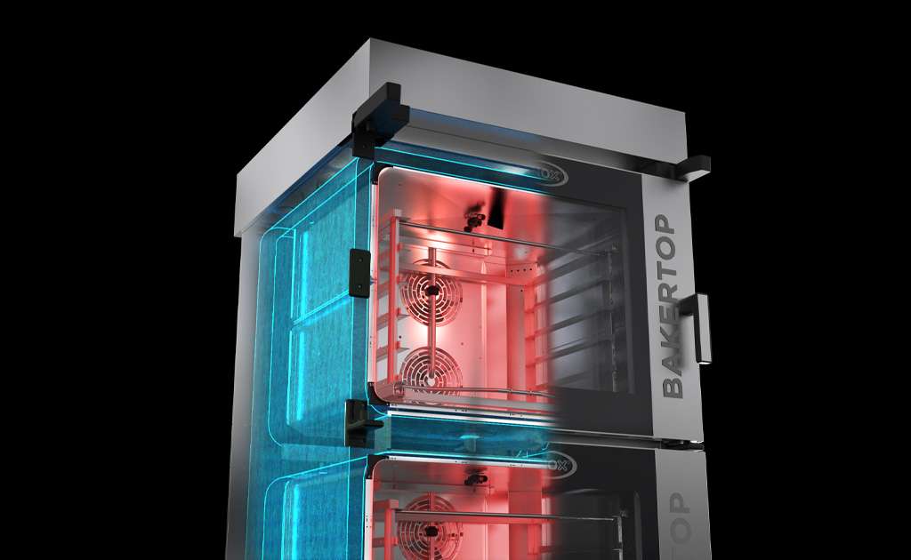 The multi-stage hood with 3 condensers allows installation directly behind the corner without any odour issues. Upgrade bakery corners and increase your offer, even without a dedicated kitchen or baking lab.