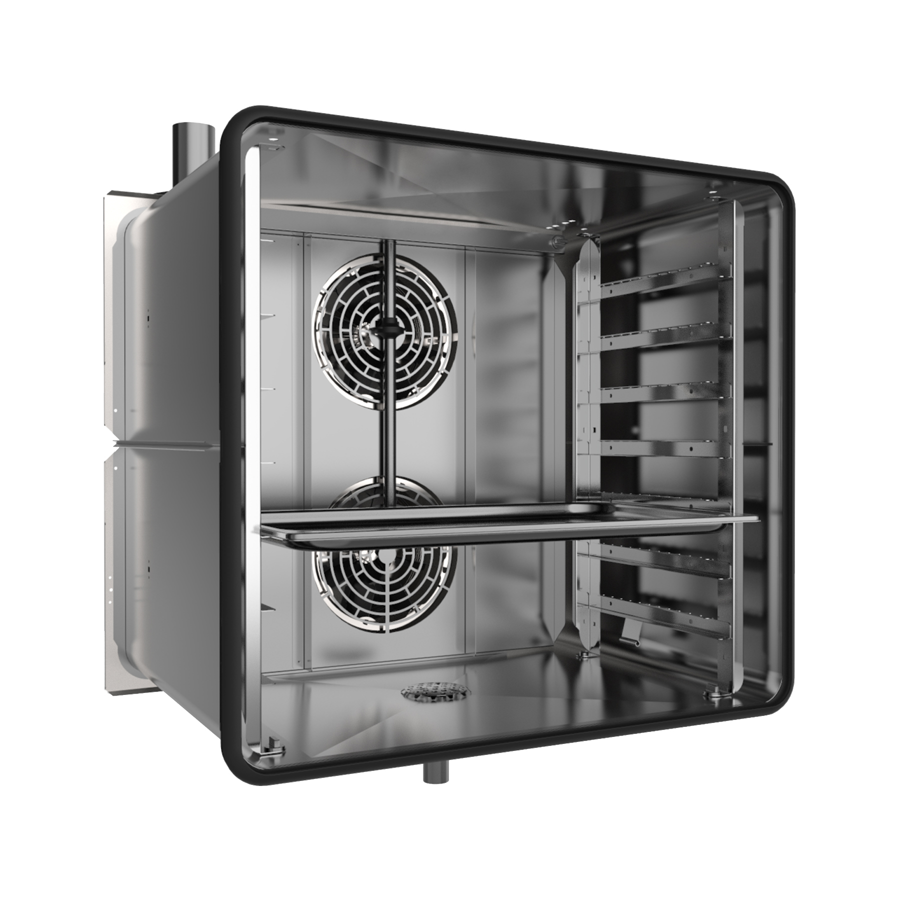 Le ventole ad alta portata distribuiscono in modo potente ed uniforme l'aria su ogni teglia. L'anello frontale anti by-pass aumenta ulteriormente la portata, permettendo cosi cotture ancora più rapide ed efficaci.